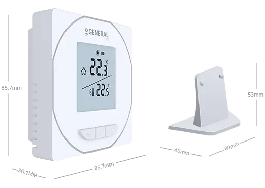 Kablosuz oda termostatınızı, evinizin dilediğiniz noktasına yerleştirebilirsiniz. Ev içerisinde herhangi bir kablolamaya ihtiyaç duymadan daha fazla kontrol, daha fazla estetik ve esneklik sunuyoruz.