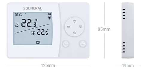 Wired room thermostat communicates with the heating unit via a cable. It is usually mounted on the wall. We recommend placing it in a central location where there is not much air circulation.