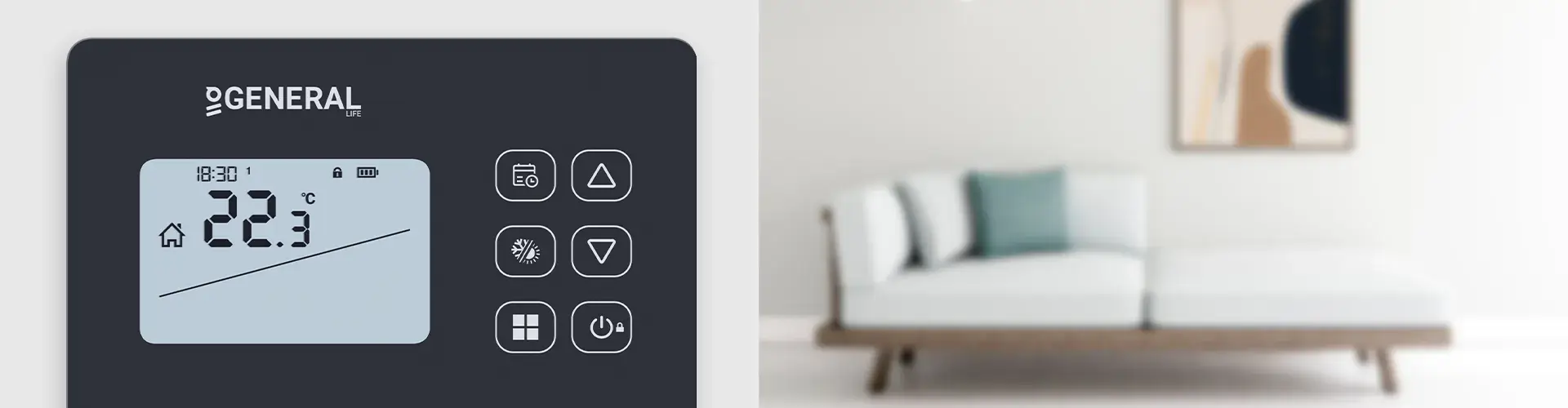 Your room thermostat keeps your living space at the perfect temperature with sensitive and balanced control. By working in harmony with your heating & cooling unit, it prevents unnecessary operation and helps maintain a comfortable environment at all times.