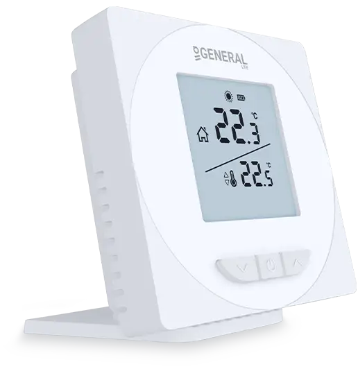 ARUNA HT15S RF kablosuz oda termostatı, TPI algoritması ve kullanıcı dostu tasarımıyla öne çıkar. Pille kullanımı sayesinde oda termostatınızı yaşam alanınızda kullanım kılavuzunda önerilen şekilde dilediğiniz konuma yerleştirebilirsiniz.