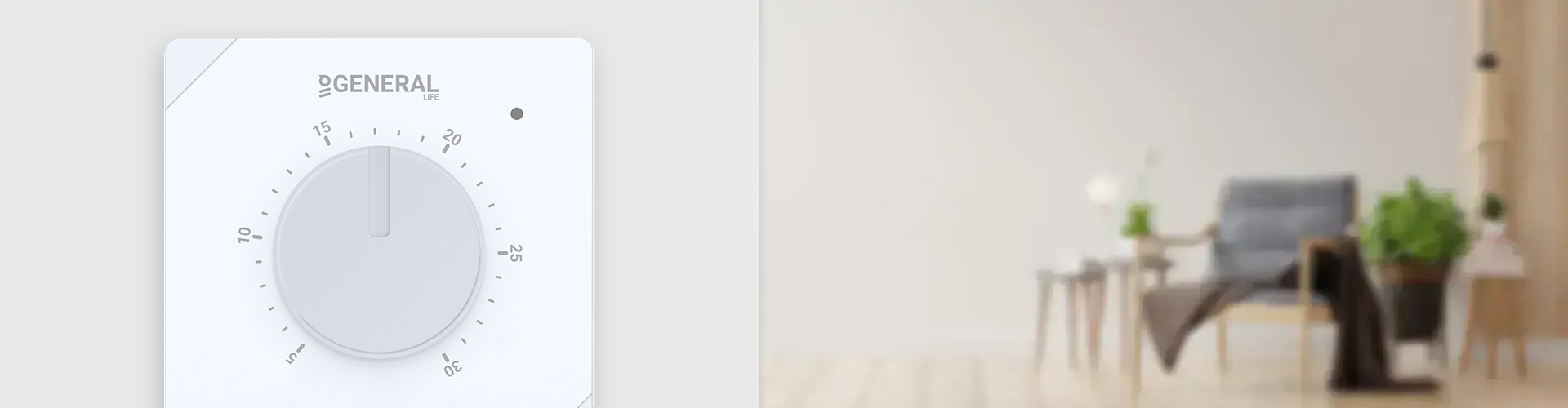 Si el sensor de suelo opcional está instalado, la protección contra el sobrecalentamiento se activará a 28°C. Si el sensor de suelo GENERAL Life mide 1°C por encima de la temperatura ajustada, el termostato de ambiente apagará la unidad de calefacción. Si mide 1°C por debajo de la temperatura programada, tu termostato de ambiente enciende la unidad de calefacción.
