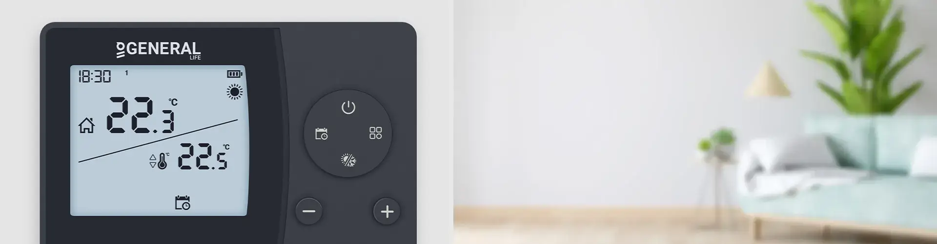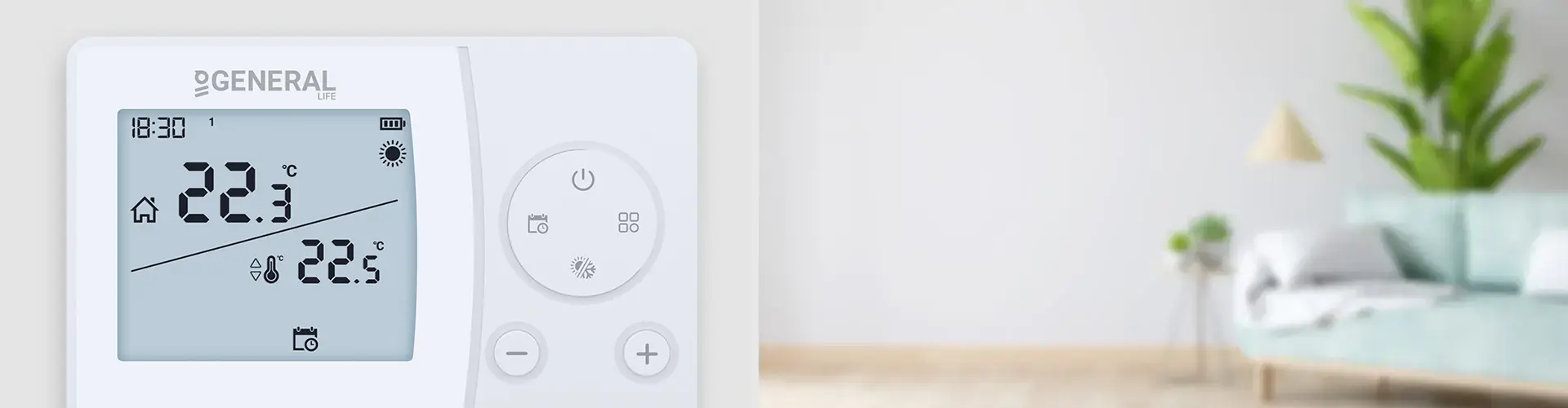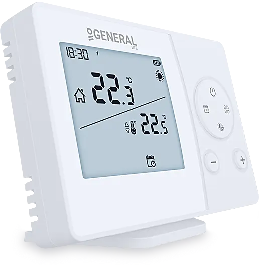Вы можете максимизировать свой комфорт и снизить затраты на электроэнергию, запрограммировав комнатный термостат, который имеет стильный дизайн и оснащен сенсорными кнопками.