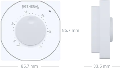 Проводной комнатный термостат связывается с отопительным блоком через кабель. Обычно его монтируют на стену. Мы рекомендуем размещать его в центральном месте, где нет большой циркуляции воздуха.