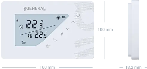 Wired room thermostat communicates with the heating unit via a cable. It is usually mounted on the wall. We recommend placing it in a central location where there is not much air circulation.