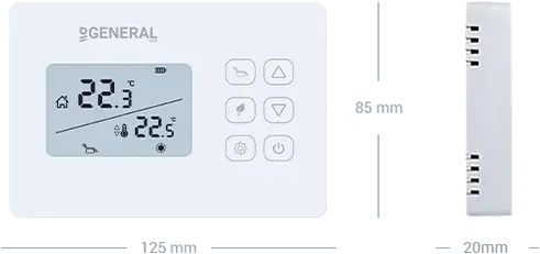 Wired room thermostat communicates with the heating unit via a cable. It is usually mounted on the wall. We recommend placing it in a central location where there is not much air circulation.