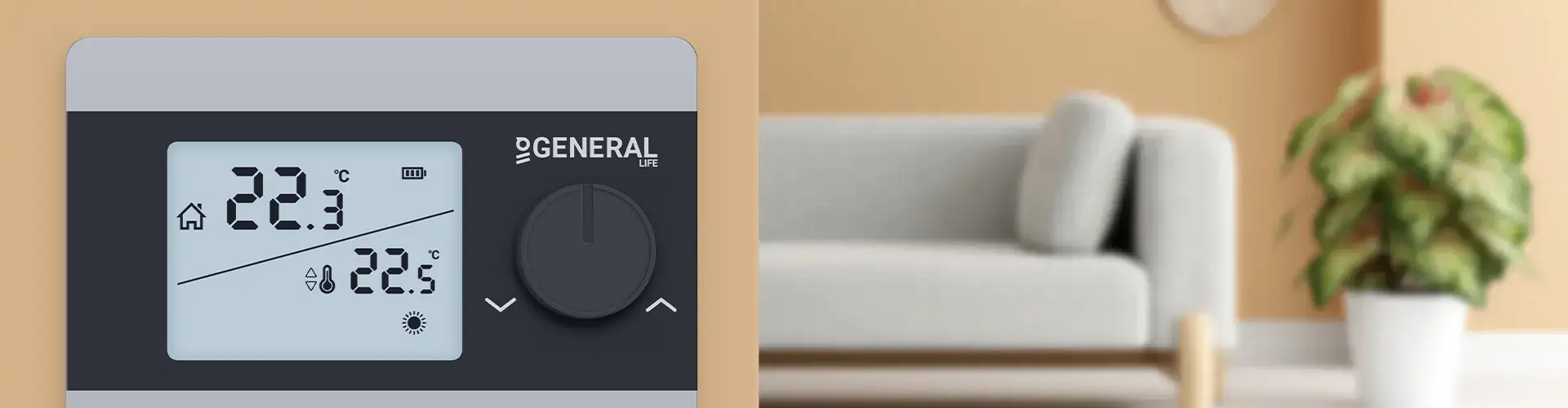 The illuminated LCD instantly shows the room temperature and the set temperature value. It combines comfort and ease of use, making ideal temperature management possible.