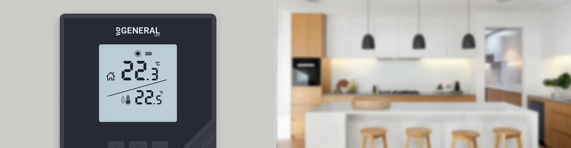 The illuminated LCD instantly shows the room temperature and the set temperature value. It combines comfort and ease of use, making ideal temperature management possible.