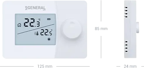 Проводной комнатный термостат связывается с отопительным блоком через кабель. Обычно его монтируют на стену. Мы рекомендуем размещать его в центральном месте, где нет большой циркуляции воздуха.