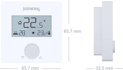 If the optional floor sensor is connected, the overheat protection will be active at 28°C. If the GENERAL Life floor sensor measures 1°C above the set temperature, your Room Thermostat will turn off the heating unit. If it measures 1°C below the set temperature, your Room Thermostat turns on the heating unit.