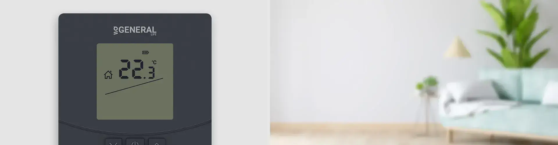Индикатор заряда батареи уведомляет вас о расходе заряда батареи комнатного термостата. Заменить батарейки очень легко. Когда на дисплее появится предупреждение о низком заряде батареи, просто вставьте новые батареи.
